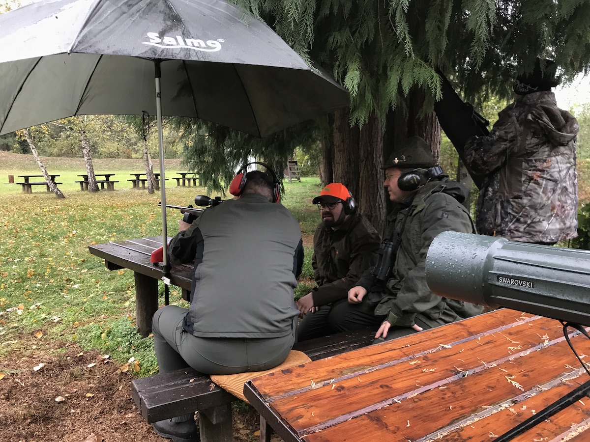 E cosi quindici partecipanti sono partiti a fine Ottobre alla volta di Kaposvar (Ungheria), dove Walter Ress e la moglie Judit (WJ tiREX Kft) li hanno accolti nel loro hotel situato nelle vicinanze della riserve di caccia e del poligono dove sono state eseguite le prove di taratura prima della prima uscita di caccia in altana. Non appena arrivati, ci siamo recati al vicino poligono per la verifica della taratura delle armi. La pioggia battente non ha aiutato la prova di tiro da posizioni diverse, ma gentilmente prima del tramonto il cielo si è rasserenato e la prima uscita di caccia in altane si è potuta fare senza il fastidio della pioggia (solo un po’ di umido sotto al sedere ;-).