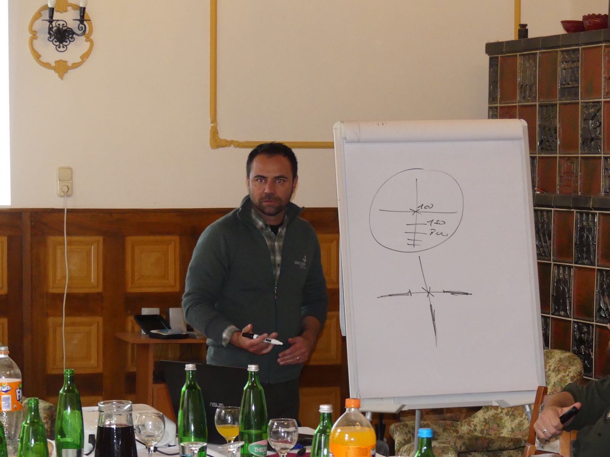 Dopo la cena il programma delle lezioni frontali ha avuto inizio: lezioni tenute da due Docenti d’eccellenza come il Dr. Corradini Cristian, Presidente dell’Urca di Reggio Emilia e Samuele Carenzi (SC Servizi Caccia), Presidente dell’Urca di Piacenza. Sono stati ripassati i concetti di base come il riconoscimento di sesso e classe di età dei caprioli durante tutto l’anno attraverso le splendide immagini prestateci per l’occasione da Andrea Dal Pian, l’accostamento degli animali, le posizioni di tiro, gli effetti del colpo, concetti di balistica terminale, il trattamento delle spoglie dell’animale e la pulizia della carabine. Christian Carli, della Swarovski Optik Italia, che come partner tecnico da alcuni anni ci supporta nella formazione dei neo selettori, in modo semplice e diretto ha illustrato il funzionamento dei mezzi ottici che vengono utilizzati durante la caccia.